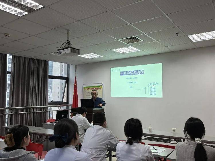 为了进一步提高武隆医院眼科医护人员的专业水平,韩旭光教授还专门举办了一场干眼诊疗流程培训。培训中,他从干眼的病因、分类、临床表现等方面进行了系统介绍,重点讲解了诊断方法和治疗原则。结合自己多年的临床经验,他分享了许多实用的诊疗技巧和案例分析,帮助当地医护人员更加直观地学习和掌握相关技能。